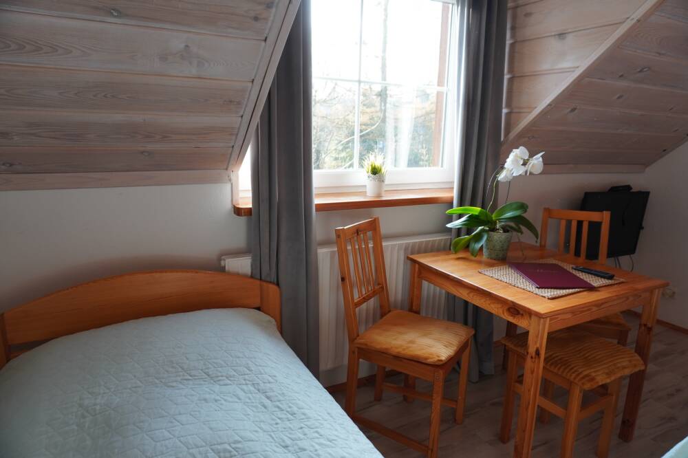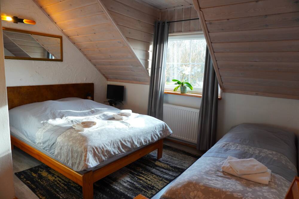 Zapraszamy do ogrodu sensorycznego, gdzie możesz wsłuchać się w śpiew ptaków, kumkanie żab, odgłosy dzikiej natury, a także klangor żurawi i wiele innych dźwięków przyrody.W ogrodzie rośnie aż 46 gatunków iglaków, a także mięta, lawenda i inne zioła, które wspierają zdrowie i dobre samopoczucie. Szczególnie polecamy uprawianie jogi wśród natury.